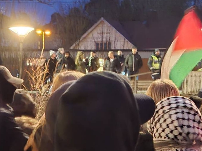 Motdemonstrationen anlände som en stor svartklädd grupp med pendeltåget till Rönninge station kl 14 och samlades vid julmarknaden på Rönninge torg.